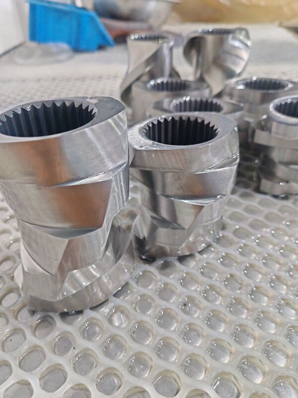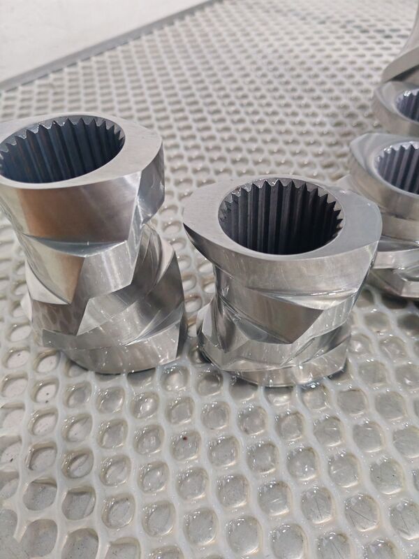 টুইন-স্ক্রু এক্সট্রুডারঃ স্ক্রু উপাদানগুলি জাল ট্রান্সমিশনের মাধ্যমে উপকরণগুলির দক্ষ মিশ্রণ এবং পরিবহন অর্জন করে।